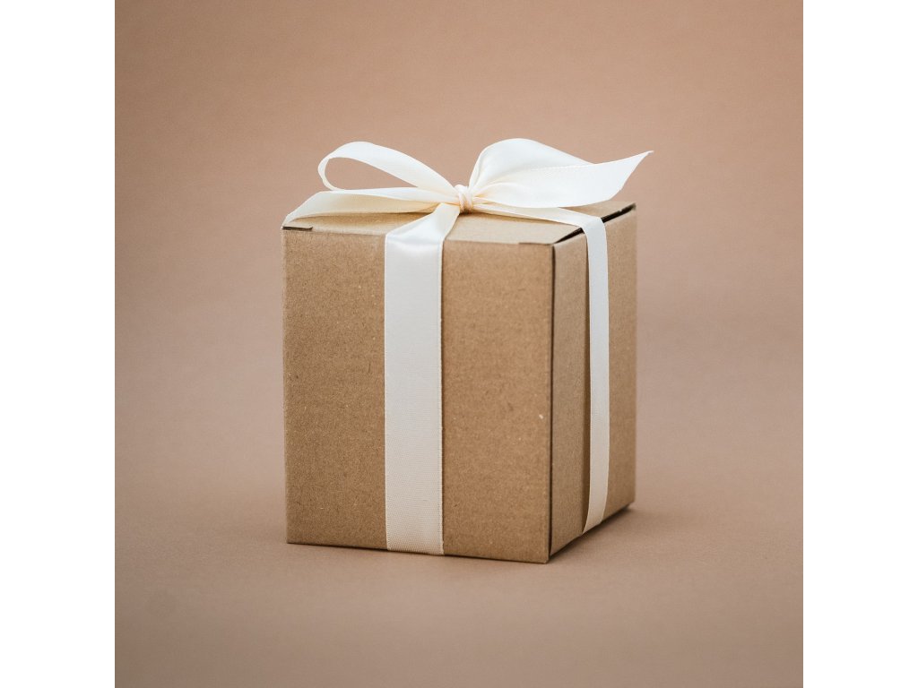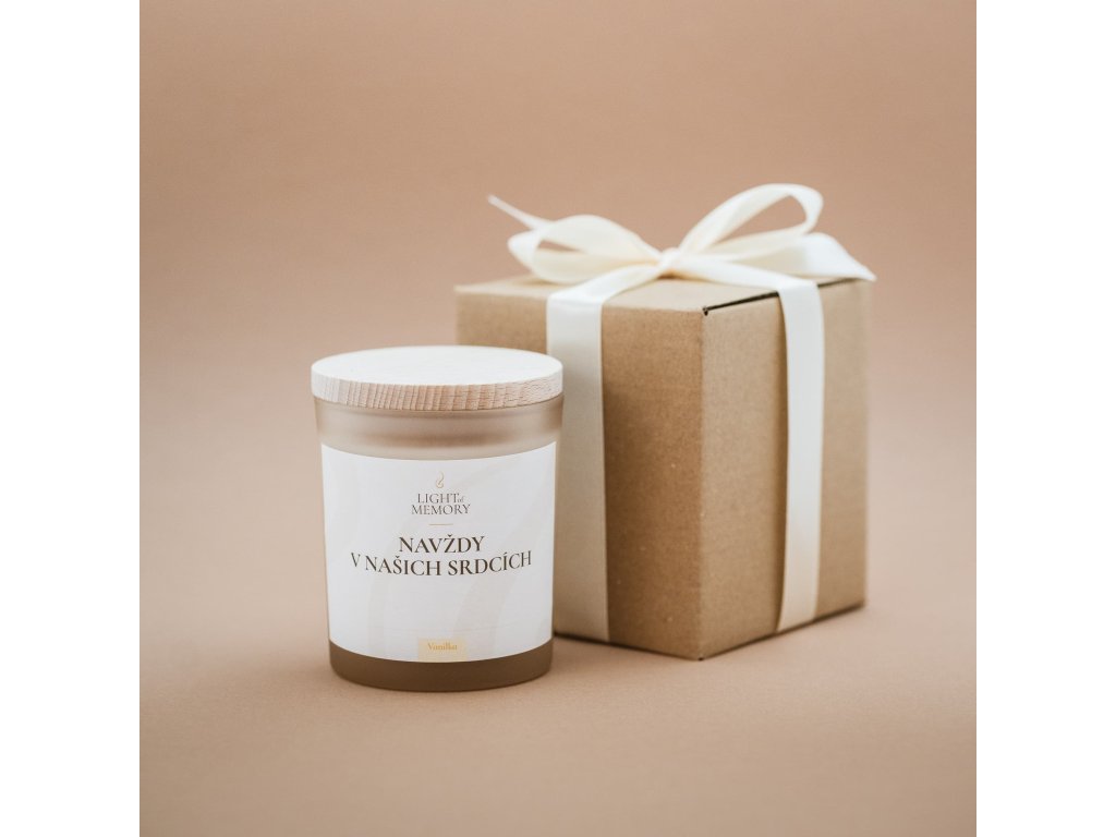 Dárkové balení se svíčkou s jemnou vůni vanilky, dřevěným víčkem v dárkové krabičce s mašlí.